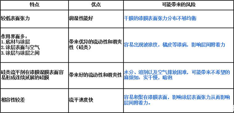 3.1各類流平劑的基本作用原理以及特性