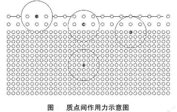 如果以質(zhì)點(diǎn)中心為圓心,10r0為半徑作一球面,顯然只有在這個(gè)球面內(nèi)的質(zhì)點(diǎn)才對(duì)位于球心上的質(zhì)點(diǎn)有作用力。熔體的表面層厚度等于質(zhì)點(diǎn)作用球半徑的一層,在表面層內(nèi)熔體質(zhì)點(diǎn)受力的情況跟熔體內(nèi)部的質(zhì)點(diǎn)的受力情況有所不同。由圖2可見(jiàn),位于熔體內(nèi)部的質(zhì)點(diǎn)A受到周圍對(duì)稱分布的質(zhì)點(diǎn)的作用,其合力為0。熔體表面層質(zhì)點(diǎn)上下分布對(duì)稱性被打破,處于表層內(nèi)的熔體質(zhì)點(diǎn)B、C和D都受到了一個(gè)指向熔體內(nèi)部的力的作用從而向熔體內(nèi)部移動(dòng),使得質(zhì)點(diǎn)間距離減小,引力轉(zhuǎn)化為斥力,最終到達(dá)平衡狀態(tài)。在平行熔體表面的方向,熔體表面層內(nèi)的質(zhì)點(diǎn)分布是均勻的,只是間距比較大,質(zhì)點(diǎn)間作用力表現(xiàn)為引力,這便是熔體的表面張力。由于表面張力的作用,質(zhì)點(diǎn)之間的距離減小,使得熔體表面積減小,而一定體積的熔體中球體的表面積最小,所以熔體表面有形成球面的趨勢(shì),但這種趨勢(shì)會(huì)受重力的影響而改變。重力是所有組成熔體的質(zhì)點(diǎn)所受的力的合力,而表面張力只是表面一層質(zhì)點(diǎn)間的引力,表面張力相對(duì)于重力而言微乎其微,所以對(duì)于大體積的熔體,重力作用遠(yuǎn)大于表面張力作用,液面呈現(xiàn)平面。對(duì)于小體積熔體來(lái)說(shuō),組成熔體總的質(zhì)點(diǎn)數(shù)較少,表面張力已接近重力,甚至超過(guò)重力,使得液面呈現(xiàn)弧形甚至球形。上述的釉滴實(shí)驗(yàn)可以證實(shí)這點(diǎn)。