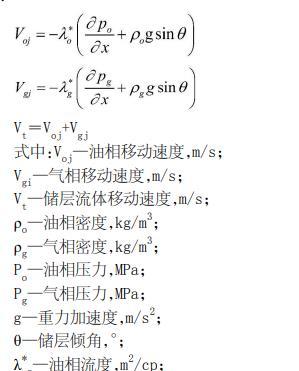 基于達(dá)西定律計(jì)算傾斜儲(chǔ)層中油相與氣相的運(yùn)移速度的公式如下: