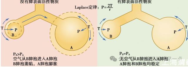 由上述公式可知,在T相同的情況下,肺泡半徑r越大,則肺泡液氣界面的壓強(qiáng)越小;肺泡半徑r越小,則肺泡內(nèi)液-氣界面的壓強(qiáng)越大。