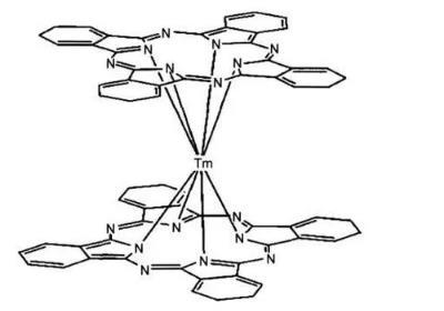 實(shí)驗(yàn)所用材料是由山東大學(xué)化學(xué)化工學(xué)院姜建壯教授提供的三明治型酞菁銩化合物TmPc2,其分子結(jié)構(gòu)如圖1所示。氯仿從市場(chǎng)購(gòu)買(mǎi),純度為分析純。以氯仿為溶劑,將TmPc2配制成一定濃度的溶液用于LB膜的制備。LB膜的制備在芬蘭產(chǎn)KSV-5000雙槽制膜系統(tǒng)上完成,在恒定的溫度和表面壓力下用水平提拉法制備成LB膜。