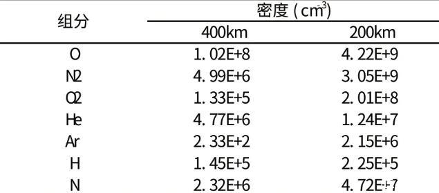 表1不同軌道高度下大氣組分密度(MSISE-90計(jì)算)