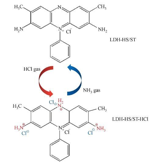 圖1 HCl和NH3氣體對LDH-HS/ST LB復(fù)合膜的化學(xué)反應(yīng)機理