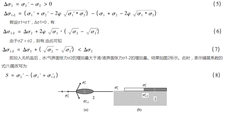 圖2無機(jī)鹽對(duì)各界面張力影響及液/液鋪展示意圖