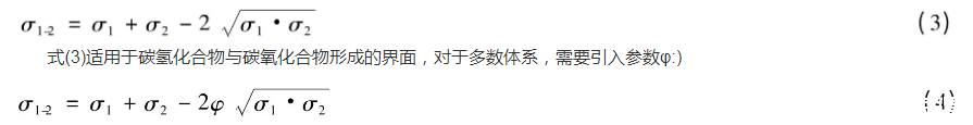 式中φ是與兩液體的摩爾體積及分子間相互作用有關(guān)的參數(shù)。根據(jù)經(jīng)驗(yàn),φ值一般為0.5~1.5。對(duì)于水與脂肪酸、醇、醚、酮接觸的體系,其值近似為1;水與飽和烴接觸的體系,其值約為0.55;水與芳烴接觸體系的值約為0.7。