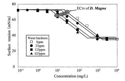 圖 9 水硬度對(duì)表面張力的影響 烷基硫酸鹽和有毒表面張力曲線 Daphnia Magna 的價(jià)值。
