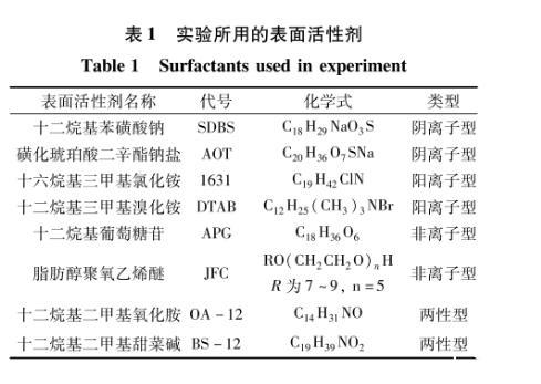 在查閱文獻的基礎上初選了8種常用且經(jīng)濟的表面活性劑(表1)。