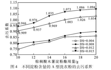 圖4不同淀粉含量的A型洗衣粉的去污系數