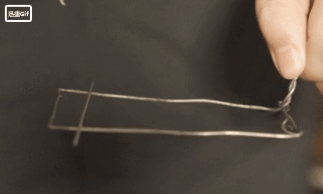 動圖中的鐵絲本來同時受到兩側(cè)肥皂膜的吸引,而當一側(cè)的肥皂膜被刺破時,鐵絲立馬滾向另一側(cè),而吸引著它滾動的正是存在于肥皂膜表面的拉力—表面張力。