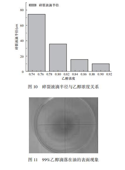 實驗6嘗試不同種類的液體。同理,液體種類也有很多種,無法一一研究,但在理論分析中發現乙醇具有特殊的分子結構,所以可以將同時具有羥基和烴基作為選擇的標準,本文采用二乙二醇丁醚進行實驗,實驗中也能觀察到小液滴的形成,認為發生了液滴爆炸的現象。