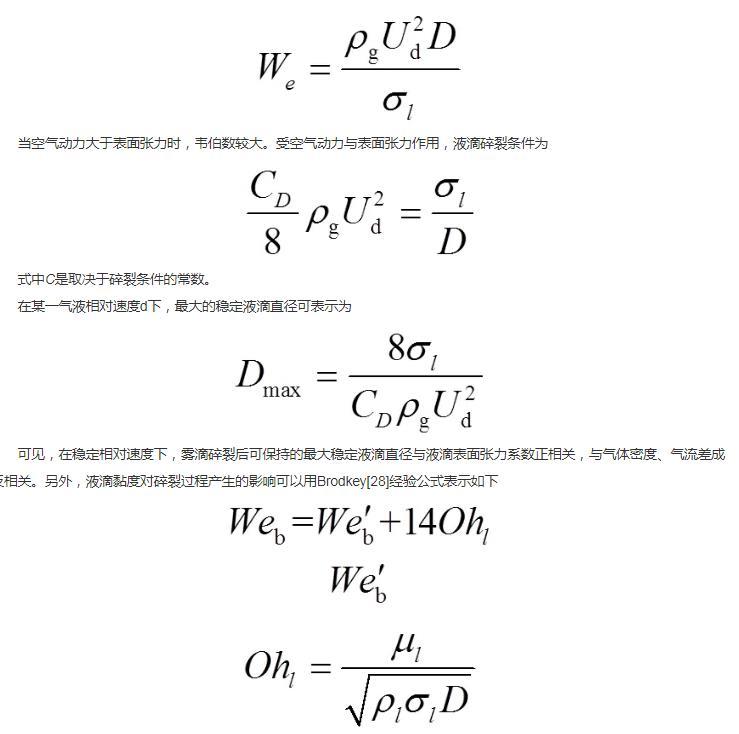 在某一氣液相對(duì)速度d下,最大的穩(wěn)定液滴直徑可表示為