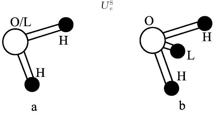 圖3a中為SPC、SPCE和TIP3P模型,b為TIP4P模型(L:負(fù)電荷作用點;H:正電荷作用點)