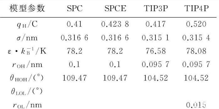 表1水分子模型參數(shù)