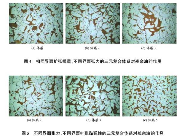 3.1.3界面張力、界面擴(kuò)張模量均不同的三元復(fù)合體系對(duì)殘余油的作用