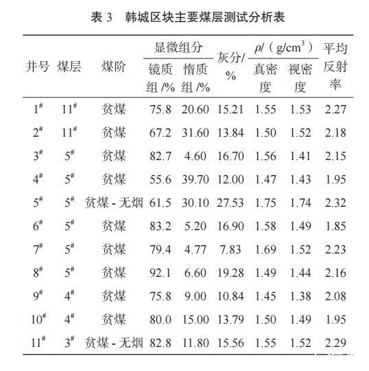 表3韓城區塊主要煤層測試分析表