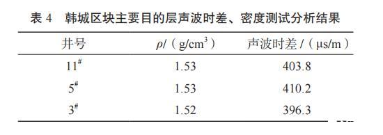 表4韓城區塊主要目的層聲波時差、密度測試分析結果