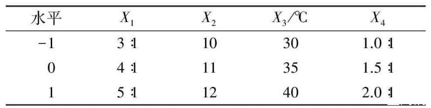表1響應(yīng)面試驗因素水平
