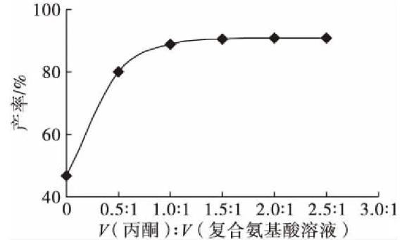 2.1.5丙酮與復(fù)合氨基酸溶液體積比對產(chǎn)率的影響