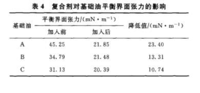 復(fù)合劑對不同基礎(chǔ)油界面張力的影響差異