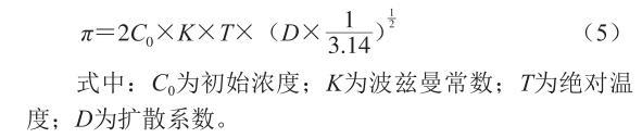 式中:C0為初始濃度;K為波茲曼常數;T為絕對溫度;D為擴散系數。