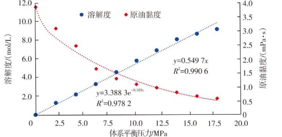 圖1原油黏度/溶解度與體系平衡壓力的關(guān)系