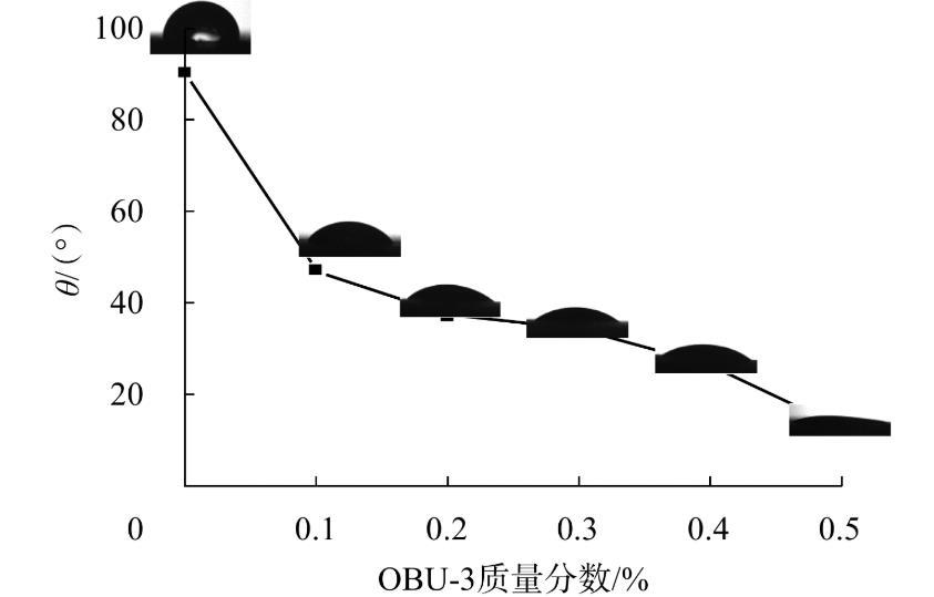 圖5 OBU-3質量分數對原油處理巖石薄片后接觸角的影響