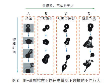 圖8固?液顆粒在不同速度情況下碰撞的不同行為