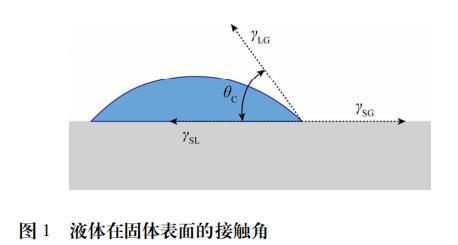 式中,γSG、γSL和γLG分別表示固-氣、液-固、液-氣界面張力,θ為接觸角。