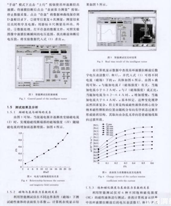 1. 變化磁場條件下測試磁性液體的表面張力系數