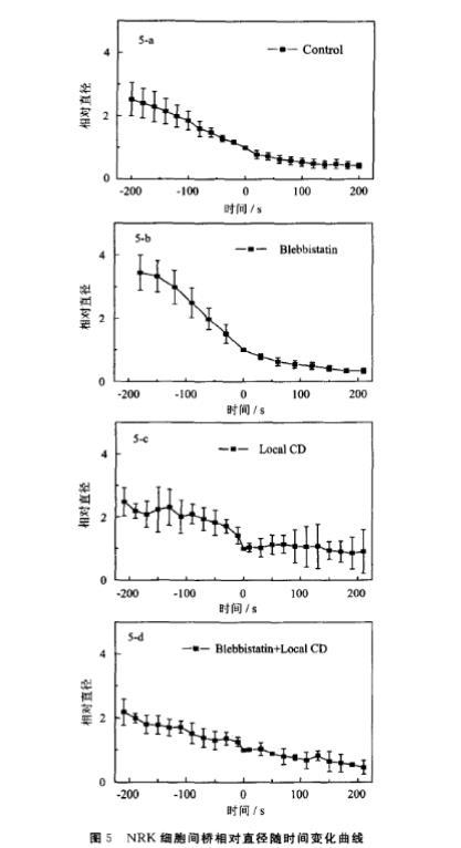 圖5 NRK細(xì)胞間橋相對直徑隨時間變化曲線
