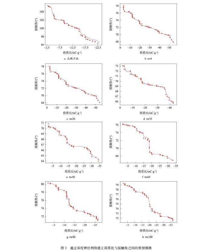 圖3 通過深度神經(jīng)網(wǎng)絡(luò)建立荷質(zhì)比與接觸角之間的模型預(yù)測