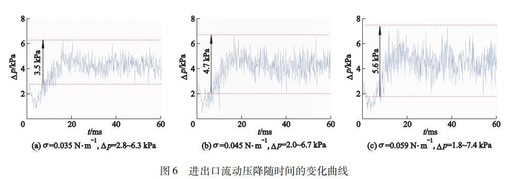 圖6進出口流動壓降隨時間的變化曲線
