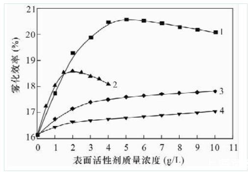 圖2不同濃度表面活性劑的霧化效率
