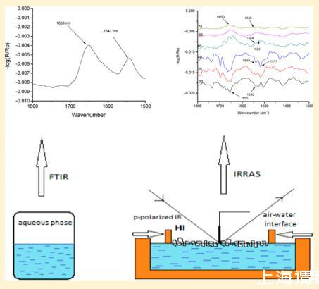 本研究為HI-Langmuir單層膜的光學性質提供了新的數據。 紫外線 ? 空氣中的可見光 ? 水界面與表面壓力相關 ? 面積等溫線曲線。 根據HI和FITC標記的HI-Langmuir單層的布儒斯特角和表觀熒光顯微鏡,未觀察到二維結構域的形成。 通過IRRAS測量,人們觀察到蛋白質在2-D中保持α-螺旋構象,知道IRRAS方法允許檢測酰胺I和酰胺II帶,這與蛋白質樣品中的α-螺旋和β-折疊相關。19,20
