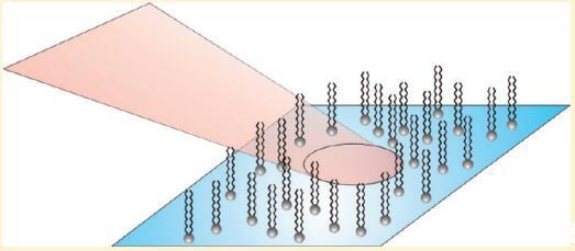 在過去的幾十年中,紅外-可見和頻發(fā)生(SFG)已被證明是研究水相表面活性劑的極好工具。1.?9在該技術(shù)中,紅外激光束與可見激光束在感興趣的界面處組合,并檢測兩者的和頻光束。在中心對稱介質(zhì)中,信號的產(chǎn)生通常是被禁止的,因此對界面上分子的存在非常敏感。如果紅外激光與界面分子的振動(dòng)躍遷共振,則SFG強(qiáng)度增強(qiáng),從而可以測量界面分子的振動(dòng)光譜。SFG光譜的形狀包含有關(guān)表面活性劑的分子構(gòu)象和方向的信息。大多數(shù)研究都集中在高密度單分子膜上,盡管在低密度下有令人驚訝的觀察報(bào)告。我們中的一些人(Roke等人4)以前曾報(bào)告過C?H不溶性表面活性劑DPPC(1,2-二棕櫚酰-sn-甘油-3-磷酸膽堿;見圖1)在水上的拉伸模式,密度約為100?2/分子,密度間隔小于1?2/分子,這歸因于脂質(zhì)尾部的卷曲和未卷曲。最近,Chen等人9報(bào)告了DPPC在水和含有低二甲基亞砜摩爾分?jǐn)?shù)的水上的CH信號在該密度附近的類似行為。此外,他們報(bào)告說,來自DPPC頭部總成的P=O振動(dòng)信號僅在CH信號存在時(shí)出現(xiàn)。他們將CH信號的缺失/存在歸因于DPPC分子的無序/有序尾部。P=O信號的缺失可通過頭部大的取向分布來解釋。
