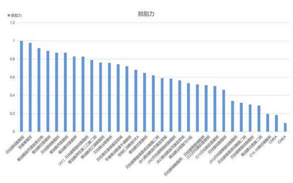 從上述數據中可以看出,在規定條件下,脫脂力最強的是月桂醇硫酸酯銨,脫脂力最弱的是兩款CMEA;