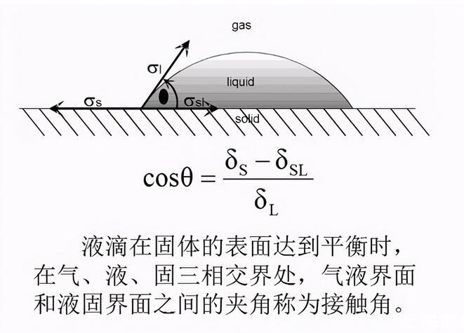 鋪展系數:S;當S>0時,液體可以在固體表面上自動鋪展,S越大,鋪展能力越大,該液體在固體表面的潤濕能力越強。