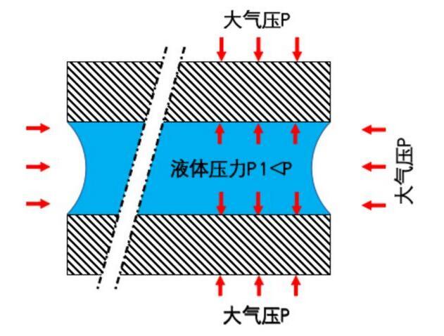 簡言之,上面的圖稍微有點錯誤:水和大氣的界面不是平的,而應該是一個凹液面。而恰恰是這個凹液面,導致了完全不同的結果。具體講,就是使得液體內部的壓力低于外部的大氣壓力。