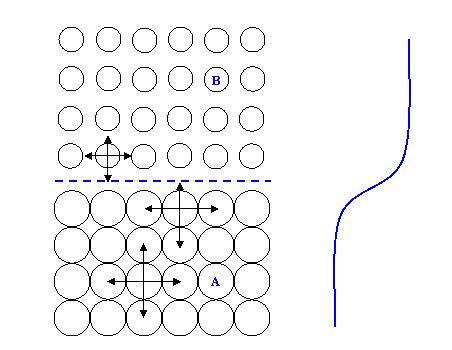 液體不能單獨(dú)存在,上面還會(huì)有氣體,氣體分子對(duì)液體分子的吸引力小,液體分子對(duì)氣體分子的吸引力大。若把液體內(nèi)部的分子A移動(dòng)到界面需要做功,那么,把氣體內(nèi)部的分子B移動(dòng)到邊界也需要做功嗎?把界面上的分子移動(dòng)到液體內(nèi)部就不需要做功嗎?