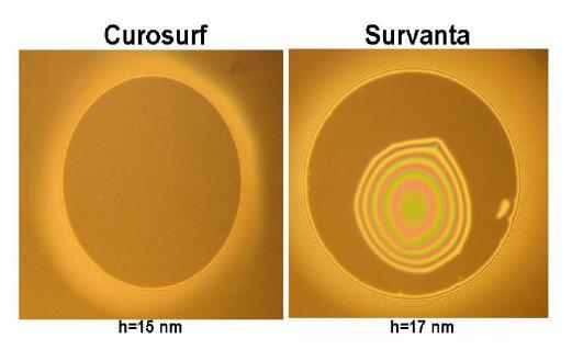 白蛋白抑制外源表面活性劑制劑在空氣/水界面的表面活性。當BSA出現(xiàn)在膜液相中時,Curosurf和Survanta都失去了在單層中保持低最小表面張力和形成黑色泡沫膜的能力。