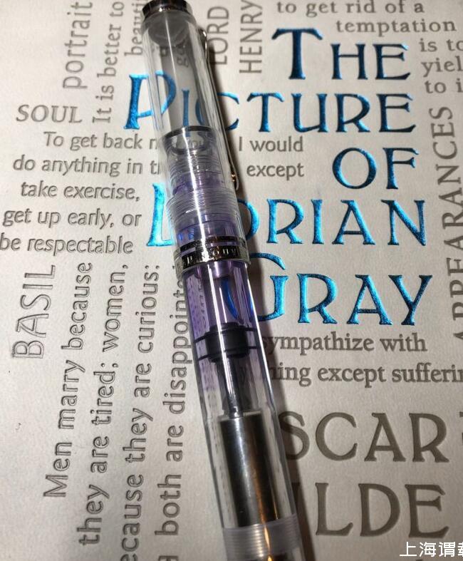 也有一些墨水是你以為洗干凈了,但用著用著還是能從犄角旮旯里蹦出來(lái)一些的:比如添加了金粉銀粉的,附著力特別強(qiáng)的(直接滲進(jìn)了樹脂的墨囊中)。如果不信邪的話可以考慮拿一支示范筆,洗不洗得掉就一目了然了——當(dāng)然也有一定的風(fēng)險(xiǎn),見下圖: