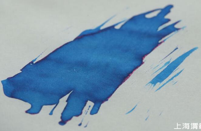 萬(wàn)寶龍的寶馬藍(lán)這款是我日常使用最多的,它在邊緣干透后會(huì)有一層金屬色澤的反光,這就是sheen,藍(lán)色墨水出紫紅色的sheen是相對(duì)比較常見的