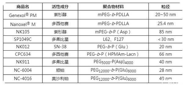 納米級的聚合物膠束具有一定的長循環(huán)性質(zhì),并可通過增強(qiáng)滲透滯留效應(yīng)(Enhanced Permeability and Retention,EPR)被動靶向于腫瘤部位,也可對表面進(jìn)行修飾達(dá)到主動靶向的目的。目前已有幾款產(chǎn)品在部分地區(qū)上市,例如韓國Samyang公司開發(fā)的紫杉醇聚合物膠束Genexol PM于2007年在韓國獲批用于治療非小細(xì)胞肺癌、轉(zhuǎn)移性乳腺癌和卵巢癌,之后又在印度、塞爾維亞、菲律賓和越南上市,目前正在美國進(jìn)行相關(guān)臨床研究;另一款紫杉醇聚合物膠束Paclical是由瑞典Oasmia公司開發(fā),2015年10月在俄羅斯上市,聯(lián)合卡鉑用于首次復(fù)發(fā)的鉑敏感性上皮性卵巢癌、原發(fā)性腹膜癌、輸卵管癌成人患者的治療。