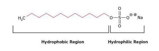 圖1.陰離子去垢劑十二烷基硫酸鈉(SDS)的結(jié)構(gòu),顯示出了疏水區(qū)域和親水區(qū)域。