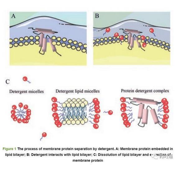 盡管新型洗滌劑在一定程度上提高了分離純化過程中MPs的穩定性,但新舊洗滌劑都有一些共性的缺陷[28]:①對于未知性質MPs的分離、純化和穩定的洗滌劑選擇,需要進行廣泛篩選;②洗滌劑以形成膠束的形式分離純化MPs,常常會導致MPs失去與脂質和其他蛋白質的天然相互作用;③穩定分離MPs效果好的洗滌劑有時會干擾下游應用。因此,無法預測哪種洗滌劑對給定的蛋白質最有效,需要通過反復實驗來確定。