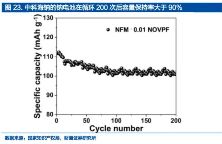 目前星空鈉電和寧德時代都采用了普魯士藍化合物作為正極材料。其中寧德時代于2021年發(fā)布的鈉離子電池,電芯單體能量密度達到了160Wh/kg,為目前全球最高水平,具有良好的快充性能,在常溫下充電15分鐘,電量可達80%;也具有良好的低溫穩(wěn)定性,在零下20°C低溫的環(huán)境下,仍然有90%以上的放電保持率。
