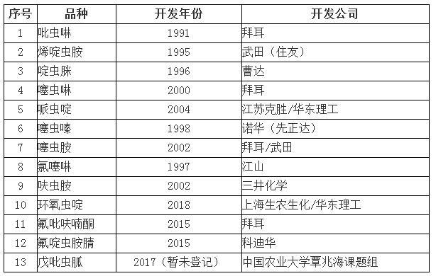 新煙堿類農藥是繼有機磷類、氨基甲酸酯類、擬除蟲菊酯類殺蟲劑之后的第四代殺蟲劑,隨著高毒農藥在全球市場的退出,新煙堿類殺蟲劑逐漸成為防治刺吸式口器害蟲、小型鱗翅目和鞘翅目害蟲最有效的一類殺蟲劑。