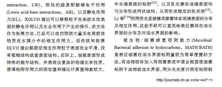 細(xì)菌在油水界面粘附的理論、特性及應(yīng)用