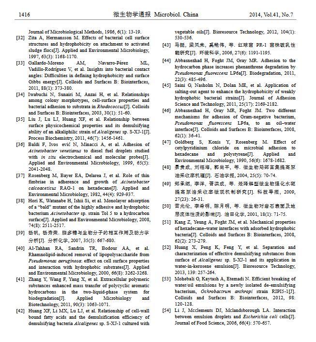 摘 要:細(xì)菌在油水界面粘附主要應(yīng)用于烷烴污染的環(huán)境修復(fù)、石油開采與加工、食品加工等方面,其研究已經(jīng)引起各界的廣泛關(guān)注。本文基于 XDLVO 理論闡述細(xì)菌在油水界面的粘附機(jī)理;總結(jié)細(xì)菌表面特性、油相及水相性質(zhì)對細(xì)菌粘附的影響;介紹細(xì)菌粘附作用在微生物驅(qū)油、生物乳化與破乳以及烷烴降解方面的應(yīng)用,并對今后的研究方向提出展望。