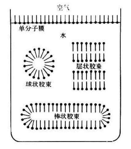 圖1含有表面活性劑的溶液中締合形成的膠團或膠束過程的示意圖